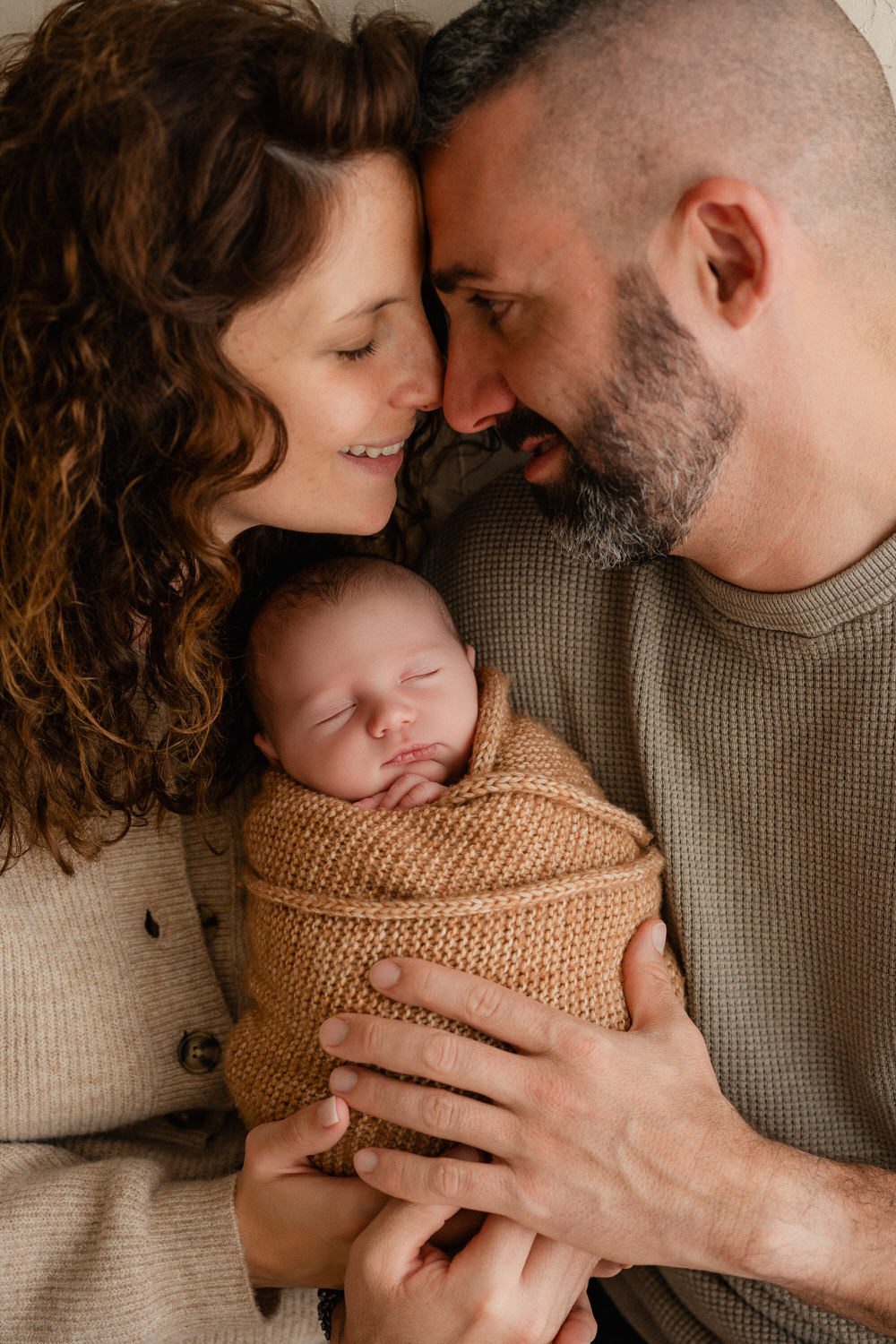 Trabajo desde una fotografía cercana y limpia, con pocos adornos y dando protagonismo al bebé y al vínculo con vuestra familia.