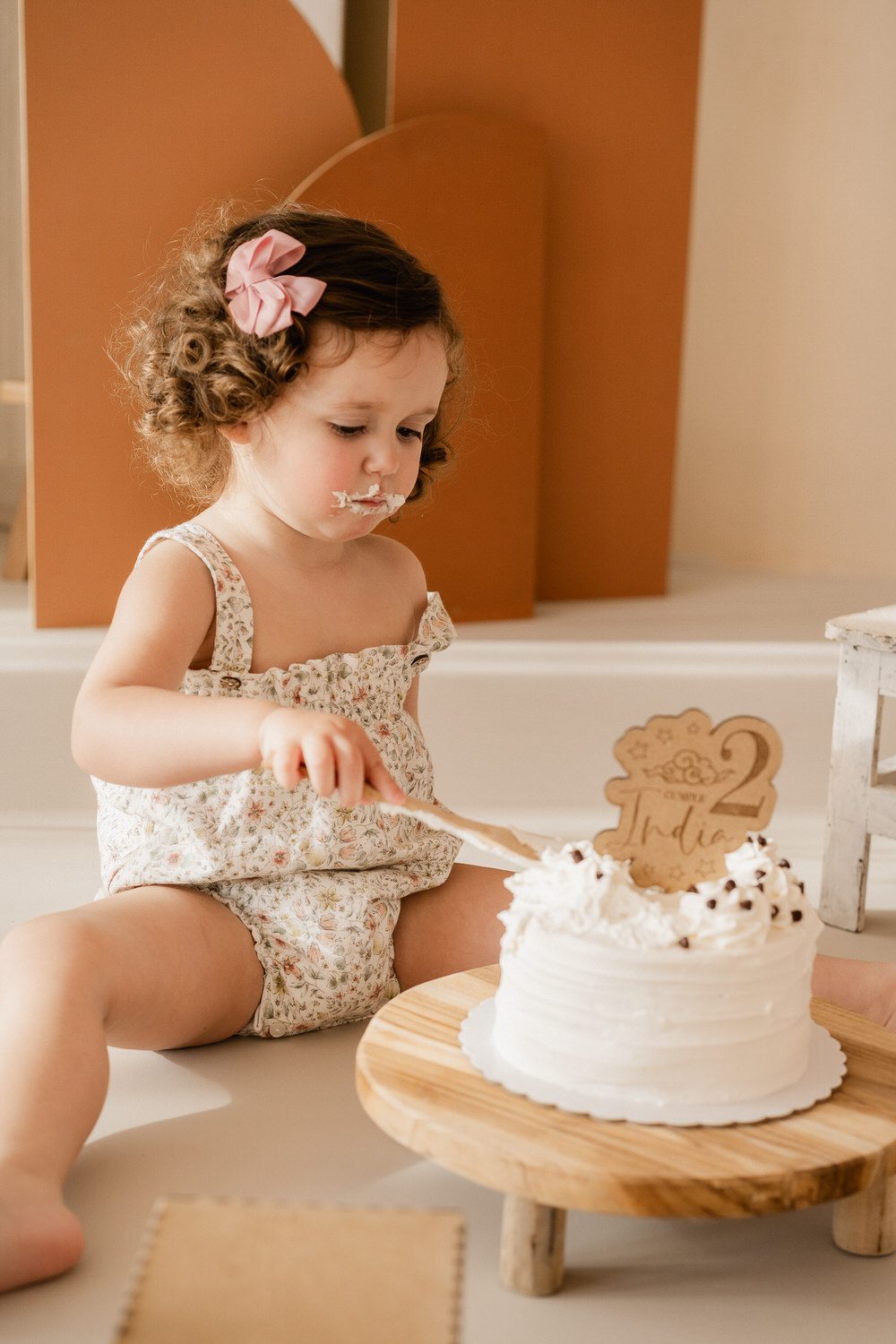 Puesto que puede mancharse lo máximo y disfrute de la tarta, es recomendable traer un par de cambios de ropa para terminar la sesión de fotografía Smash Cake.